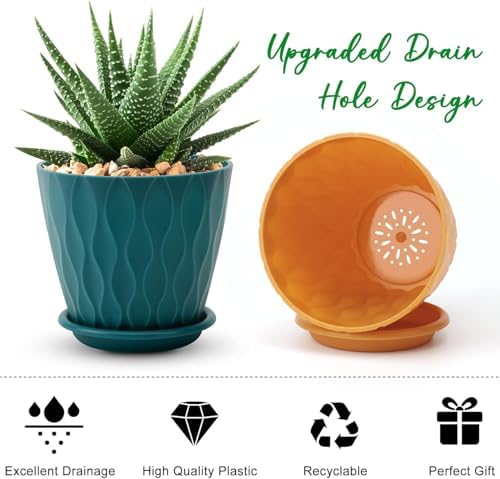 6 inch Plant Pots, 5 Pack Flower Pots Outdoor Indoor, Planters with Drainage Holes and Tray Saucers(Multicolor)